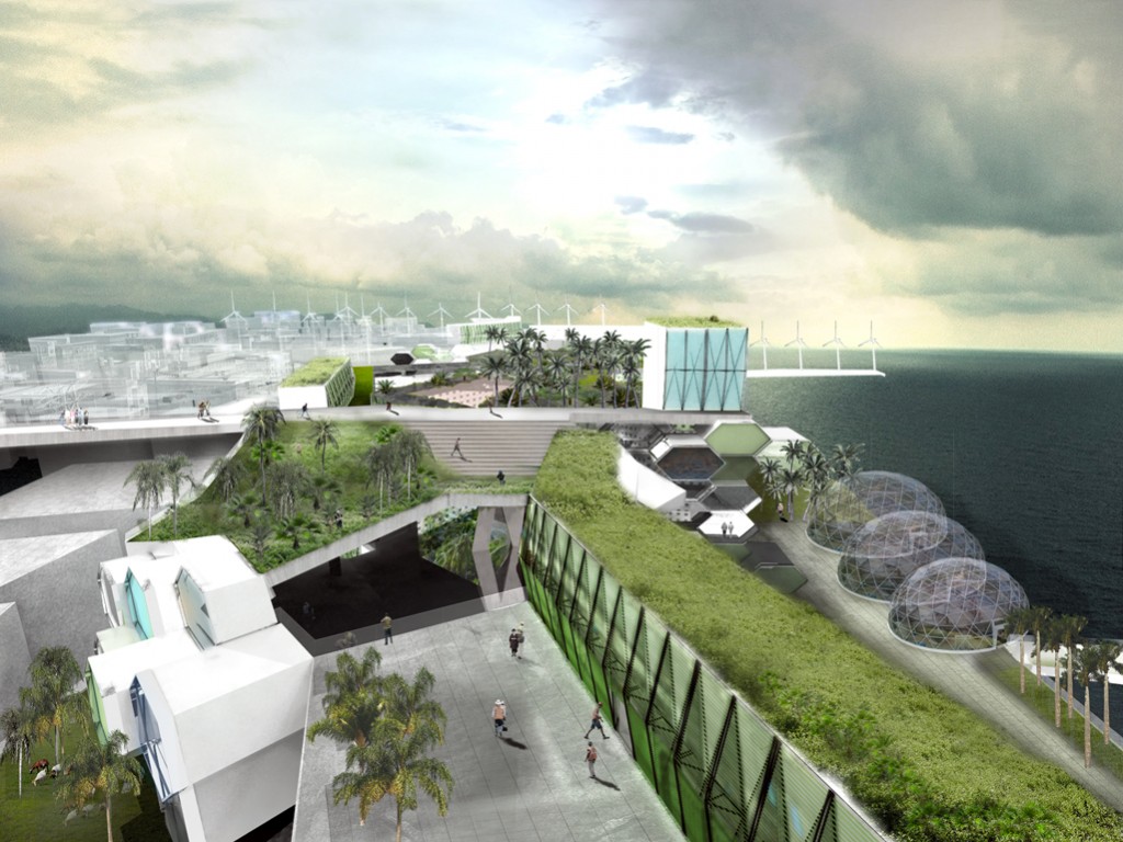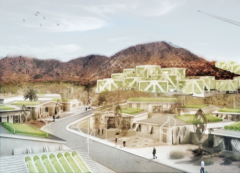 Fast forward to the year 2100. New York, along with Phoenix, Beijing, Sao Paulo, Manila, and many more of the world’s most populated cities, is irrevocably changed. Much of the earth’s great middle swath is subject to droughts, wildfires, and desertification, while increasingly frequent super storms plague coastal areas, destroying precious agricultural lands by bringing seawater far inland. Where in the world shall we live, and what will our built environments be like? The study envisions design solutions for a planet that will be more densely populated, subject to an array of environmental challenges, and significantly warmer, by an average of 4°C.